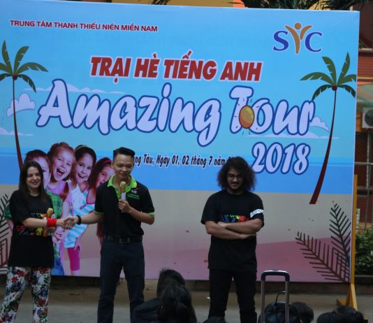 Sáng nay, ngày 01/7/2018 chương trình trại hè tiếng Anh- English Camp với tên gọi Amazing Tour  do trung tâm thanh thiếu niên Miền Nam tổ chức đã chính thức bắt đầu. Đúng 5g30’ sáng phụ huynh đã đưa các học viên tập trung khá đông đủ. Nhiều em...