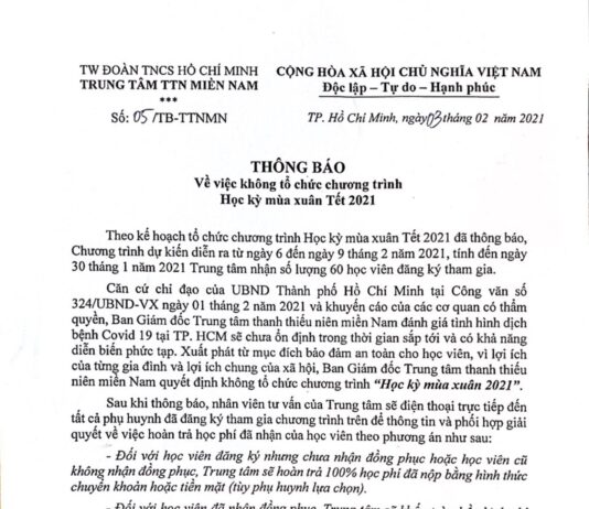 THÔNG BÁO Về thời gian mở lại hoạt động của đào tạo, huấn luyện  - Căn cứ vào công văn số 268/UBND-VX ngày 24 tháng 01 năm 2022 của UBND TP. Hồ Chí Minh về việc tổ chức dạy học trực tiếp tại các cơ sở giáo dục trên địa bàn...