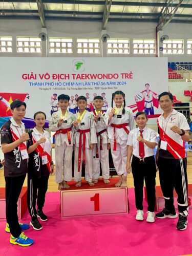 các em thành viên CLB nhận huy chương Giải Vô địch Taekwondo trẻ